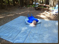 Hoe druk je de lucht uit de tent als je hem oprolt? Door erop te gaan liggen!