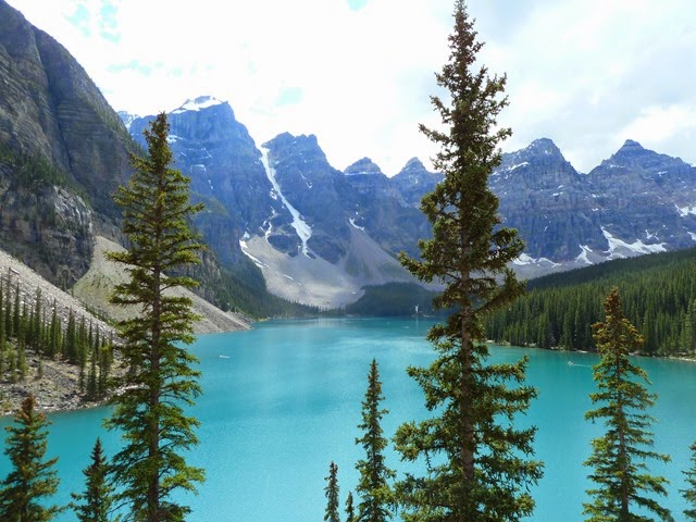 Hierna reden we naar Lake Moraine. Dat is de tweede aanrader wat ons betreft. We reden weliswaar in colonne naar boven, een ritje van 14 km, maar eenmaal daar aangekomen weet je niet wat je ziet. Zó blauw, het deed gewoon pijn aan je ogen.